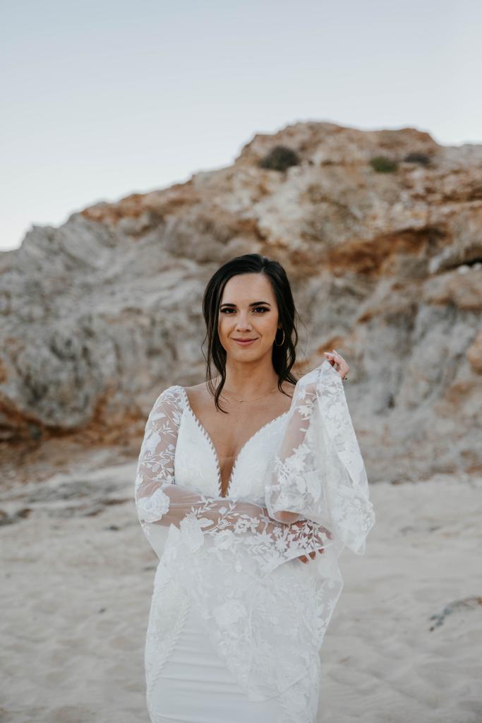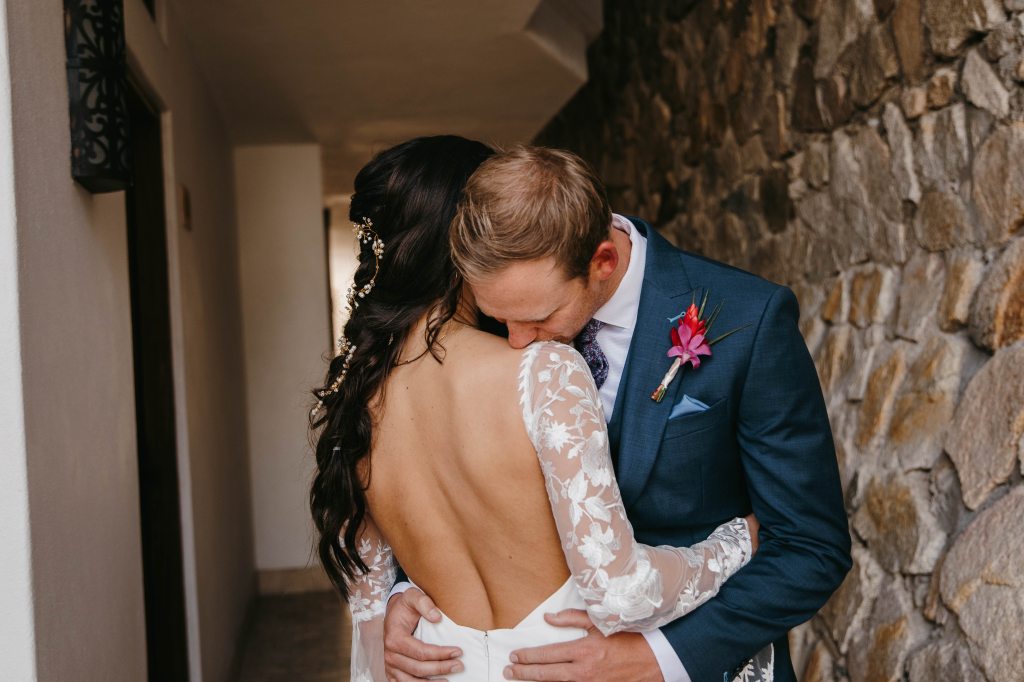 Wedding Credits: Dress – Lovely Bride; HMU – Blanc Bridal Salon Cabo; Photographer – Billi Cate Photography; Florals/Decor – Del Cabo Weddings.